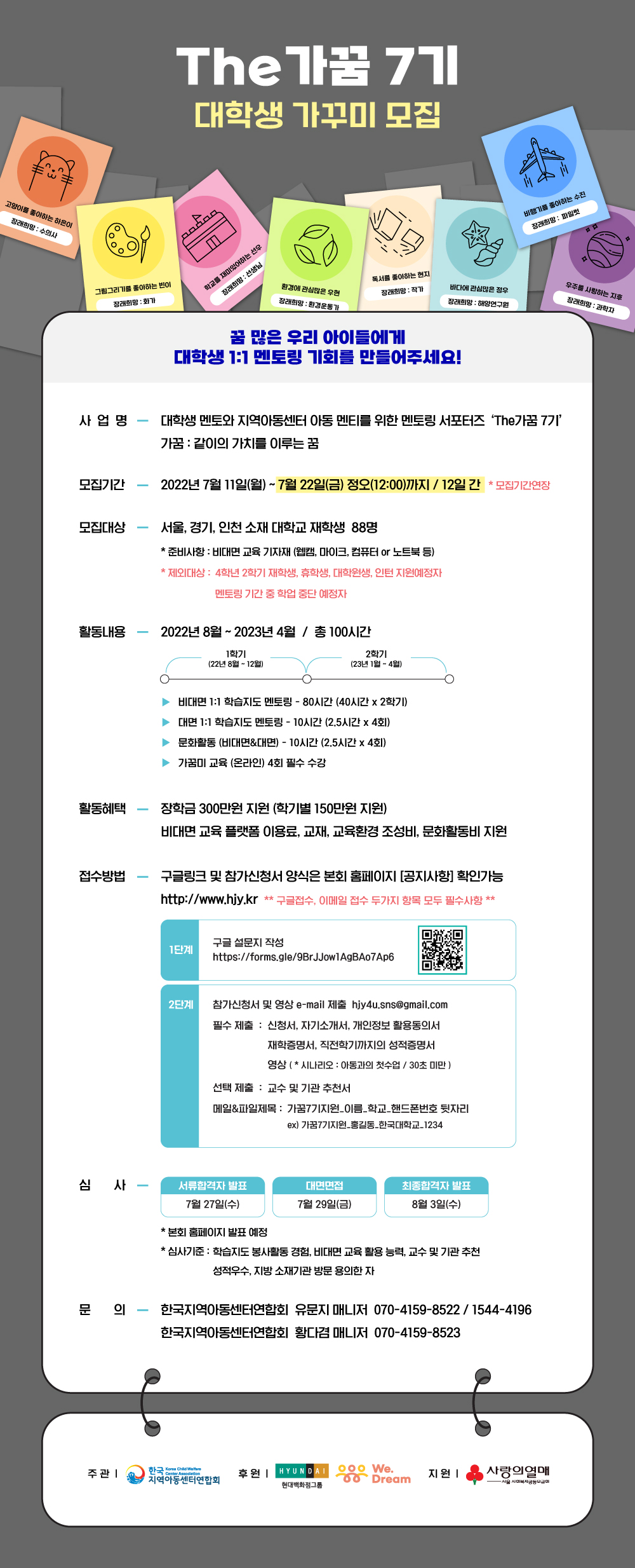 ▶ 신청기간 : 2022년 7월 11일(월) 10:00 ~ 7월 22일(금) 정오(12:00)까지▶ 구글접수, 이메일 접수 2가지 항목 모두 필수사항입니다.