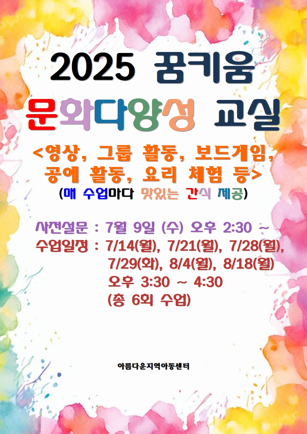 2025년 7월 9일 ~ 8월 28일 (7회기 진행)