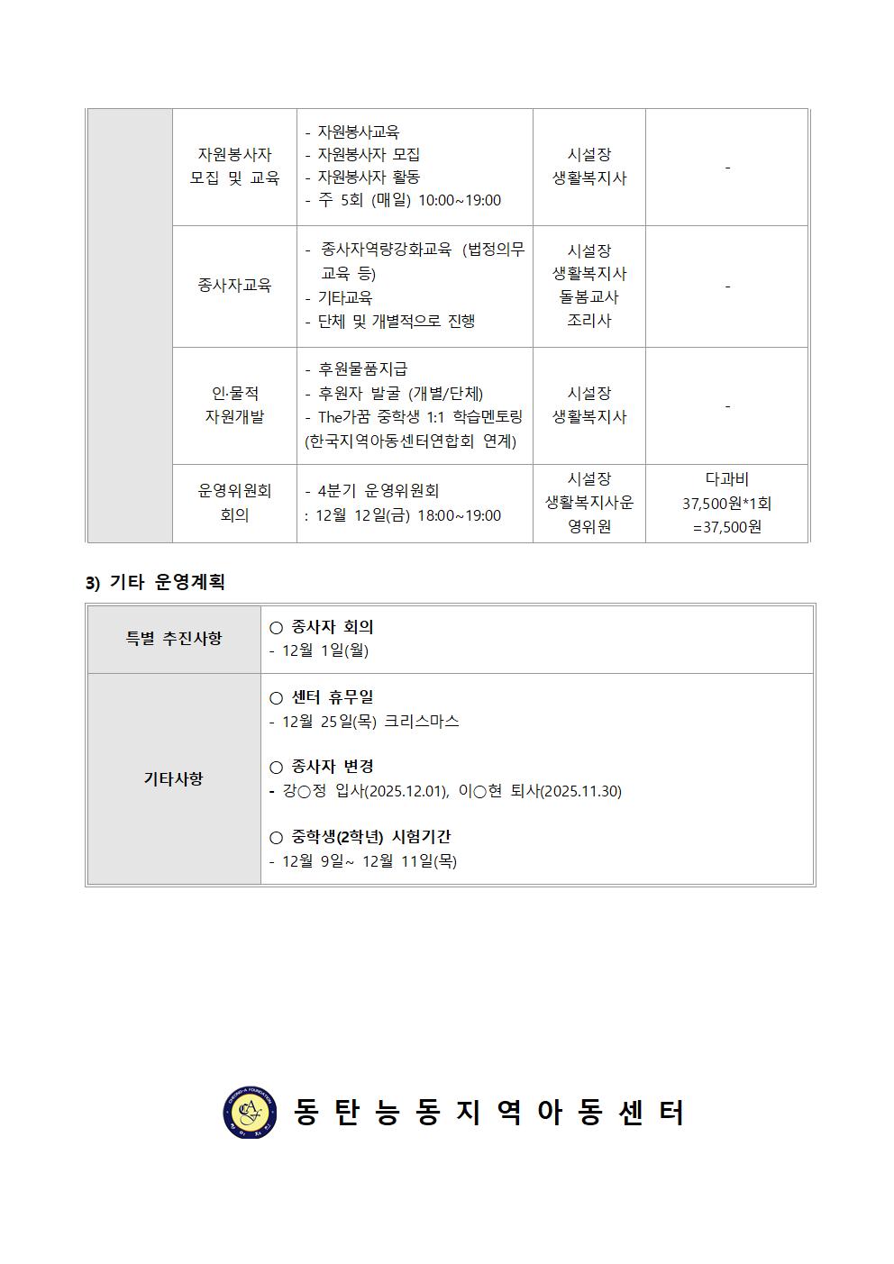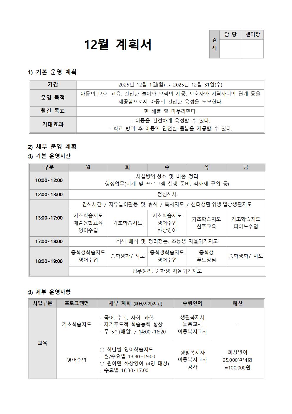 2025년 12월 월간계획표