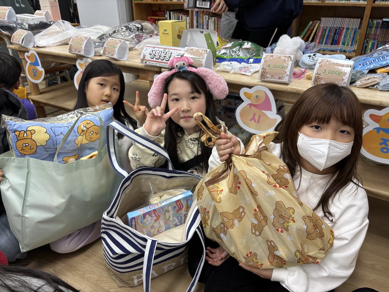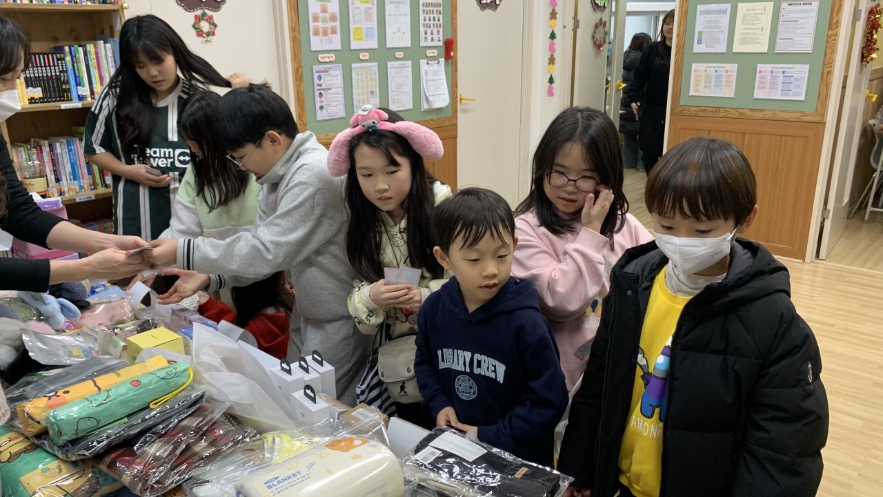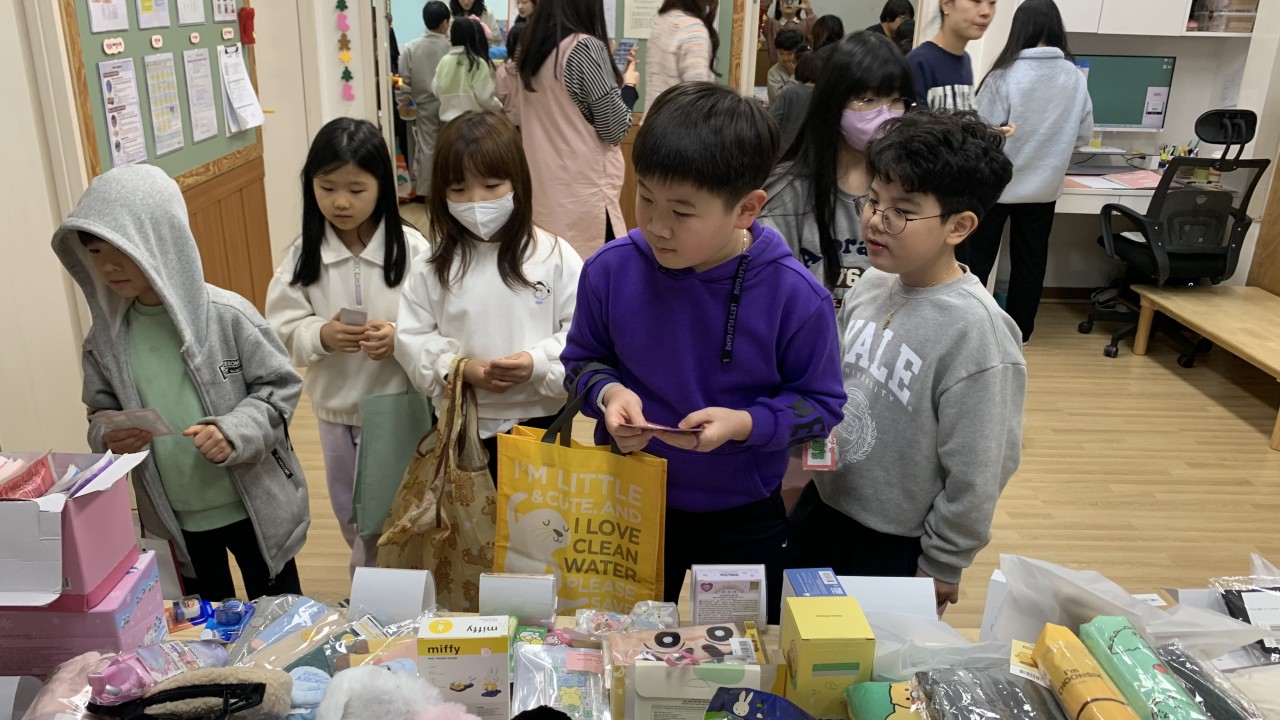 아이들이 다양한 물품을 살펴보며 모두가 마음에 드는 물품을 선택하였습니다.