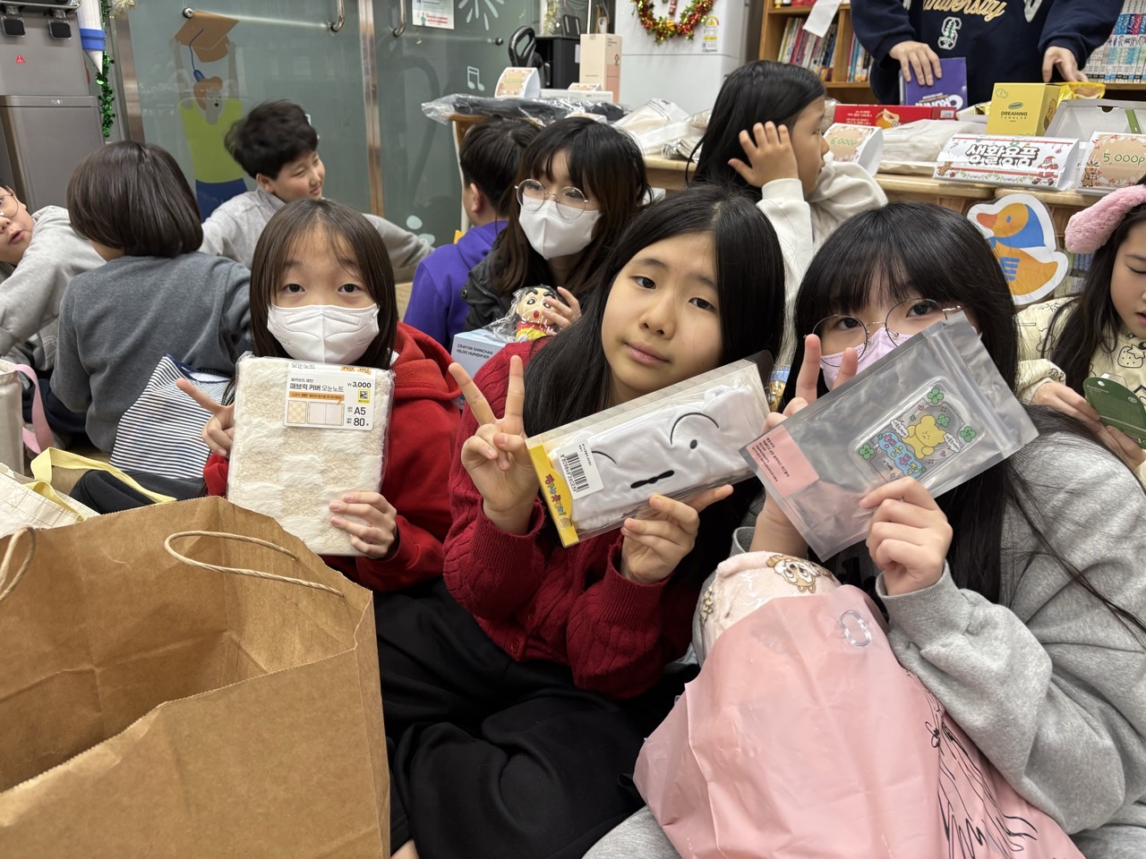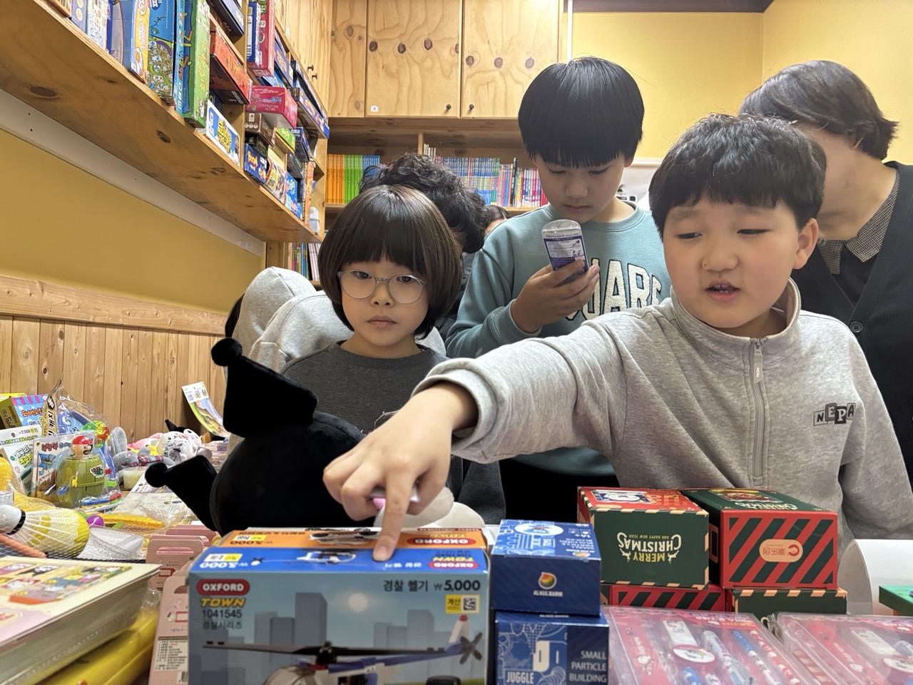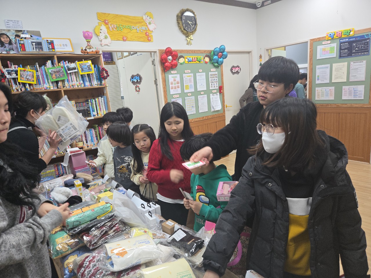 아이들이 다양한 물품을 살펴보며 모두가 마음에 드는 물품을 선택하였습니다.
