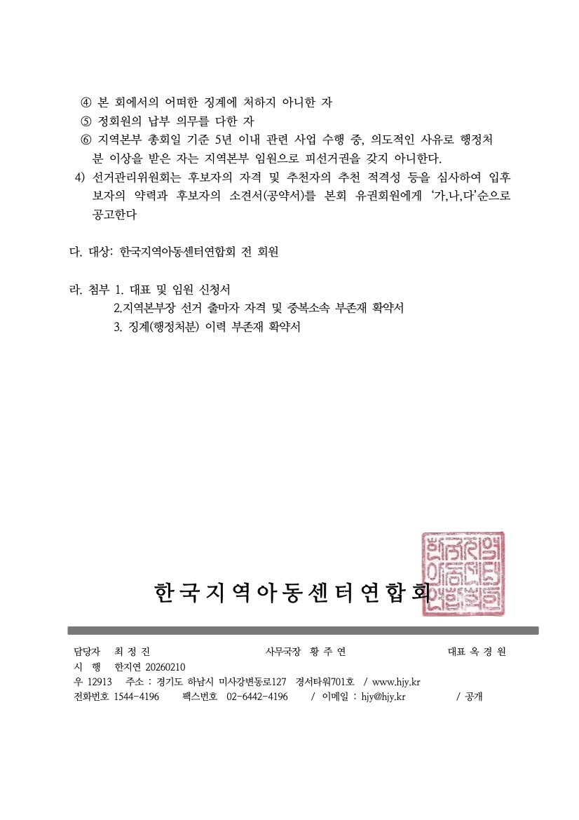 [선거관리위원회] 한국지역아동센터연합회 신임 감사 모집 공고