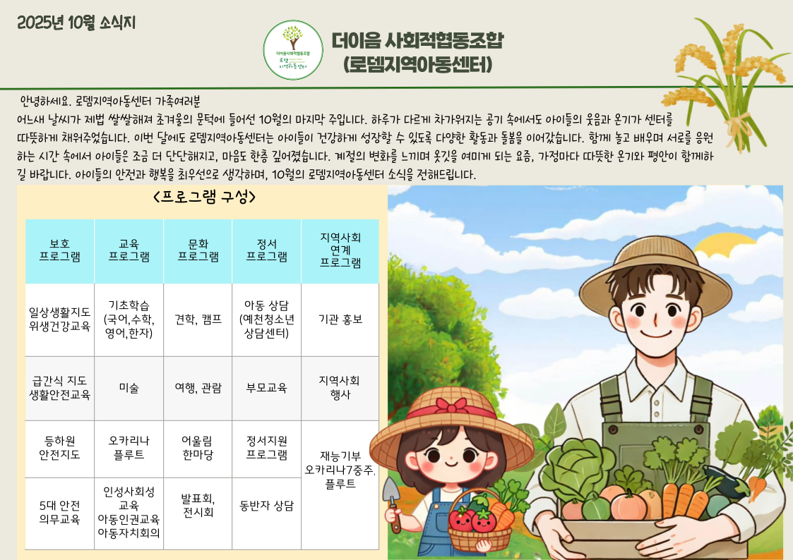 25년 10월 더이음사회적협동조합(로뎀지역아동센터) 뉴스레터