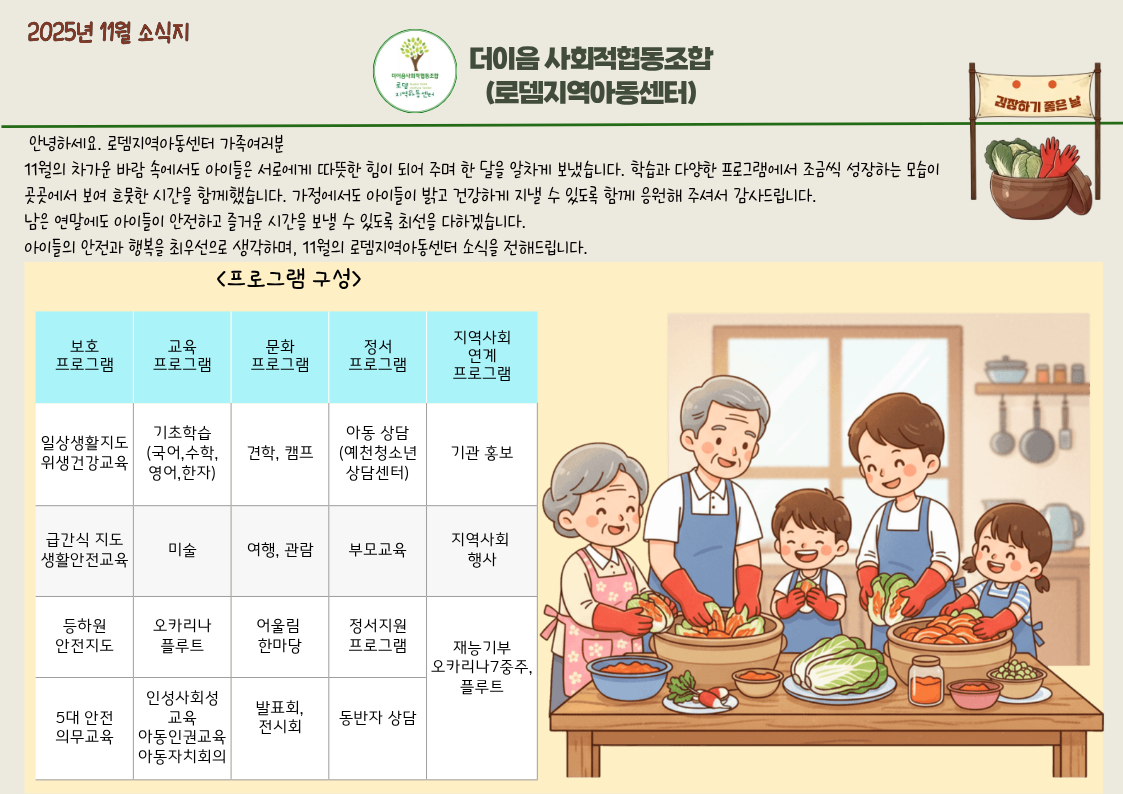 25년 11월 더이음사회적협동조합(로뎀지역아동센터) 뉴스레터