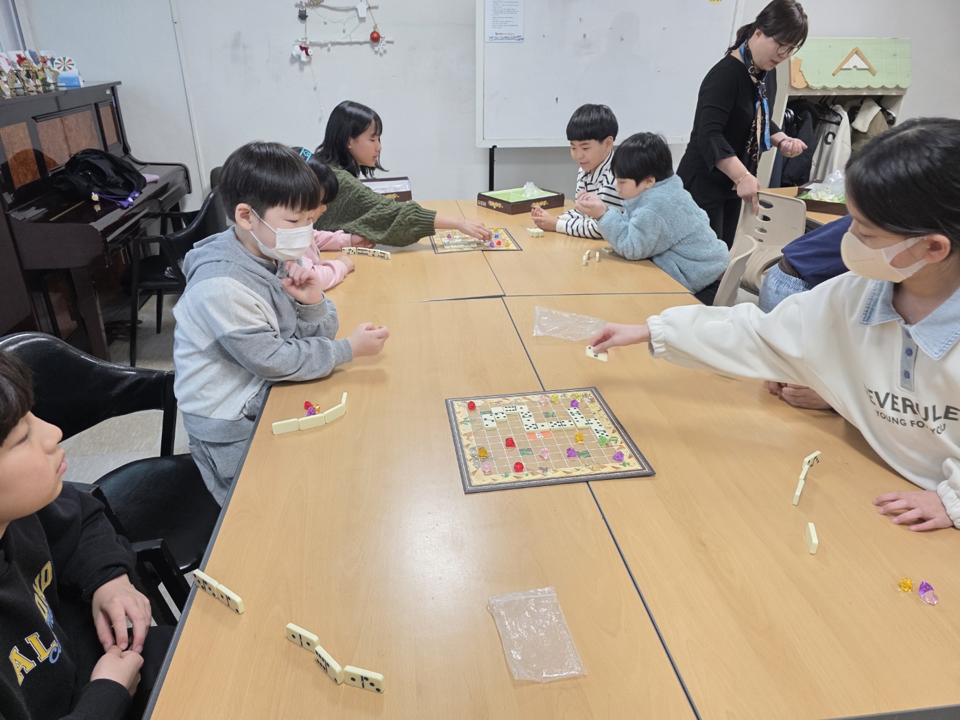 이번 보드게임 프로그램에서는 도미노를 이용해 숫자를 6으로 맞추며 길을 만들어 보석을 획득하는 ‘도미노 탐험’ 활동을 진...