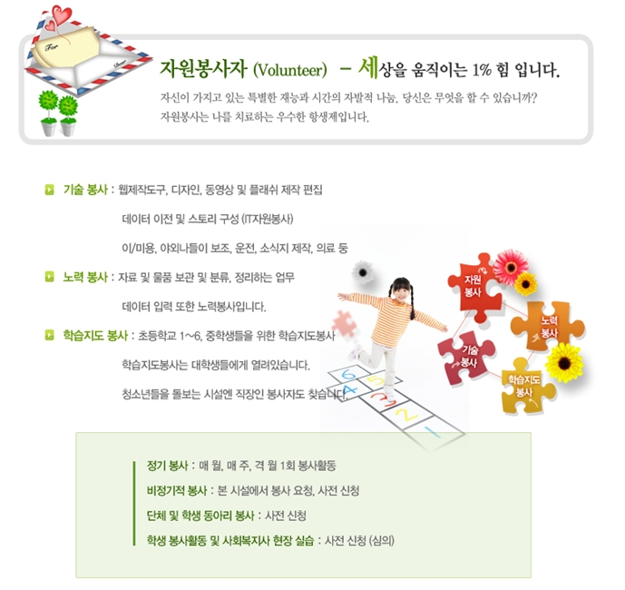 사랑지역아동센터와 함께 할 봉사자를 모집합니다.