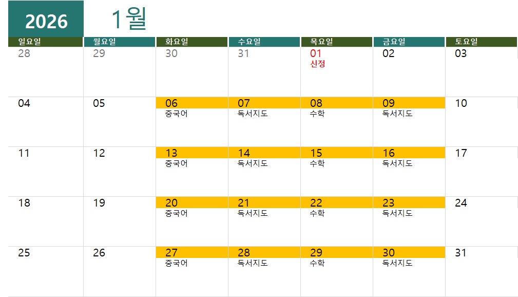 <1월 행사 및 계획표>