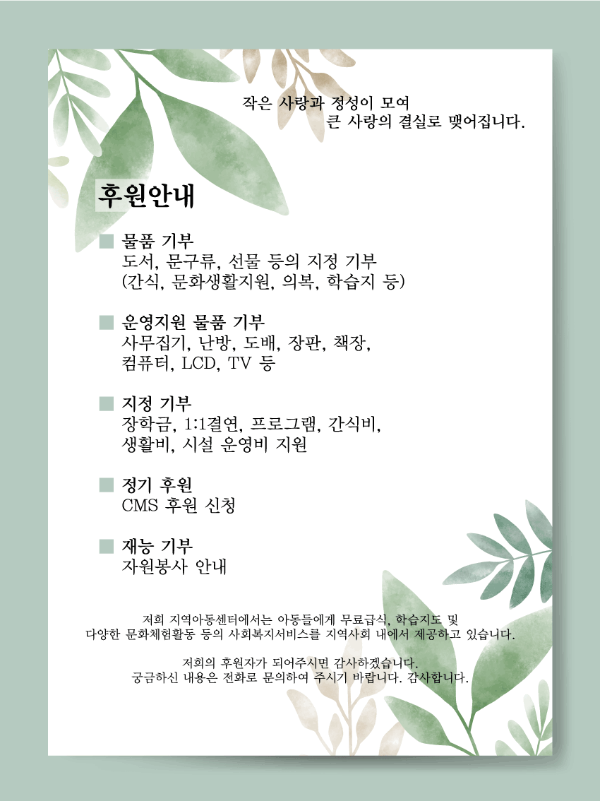 우리 아이들의 후원자가 되어 주세요~~