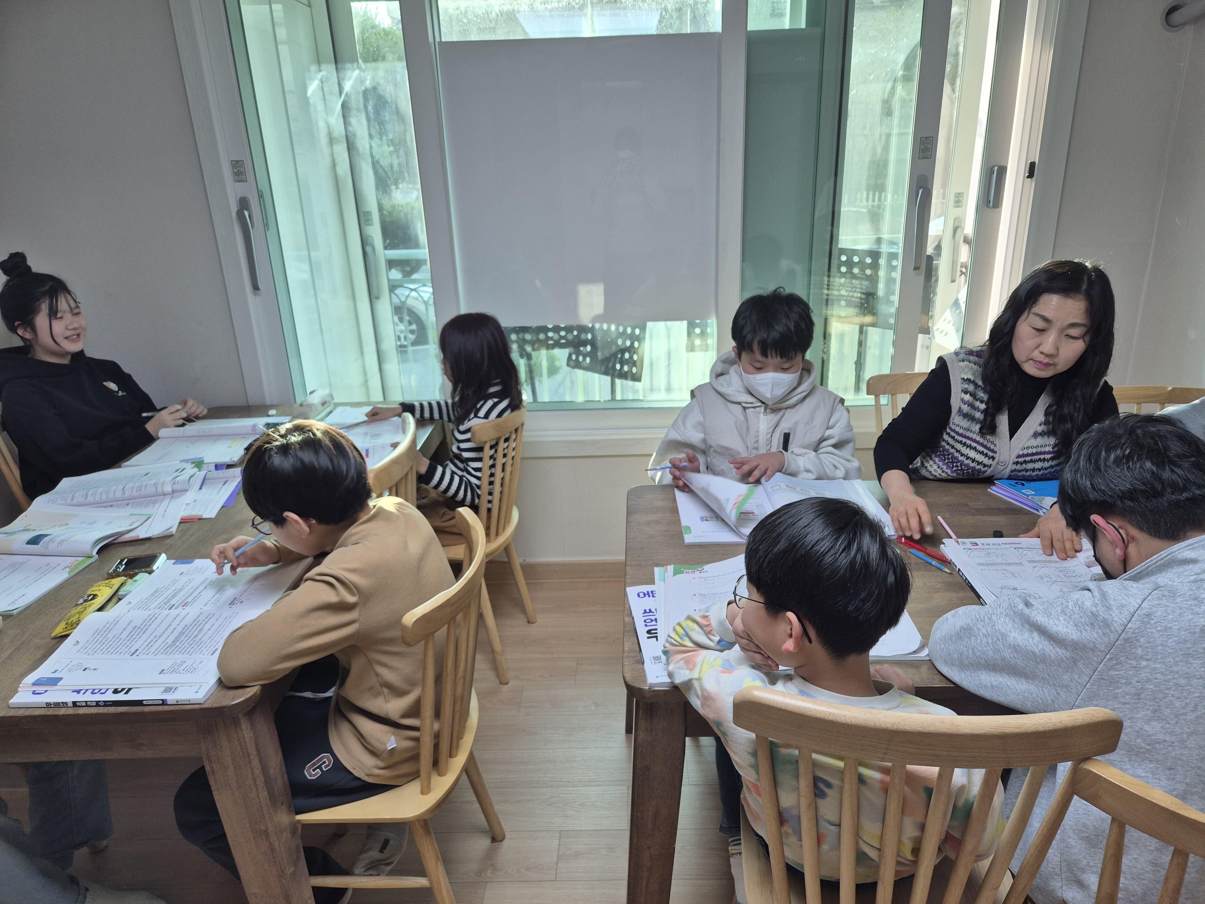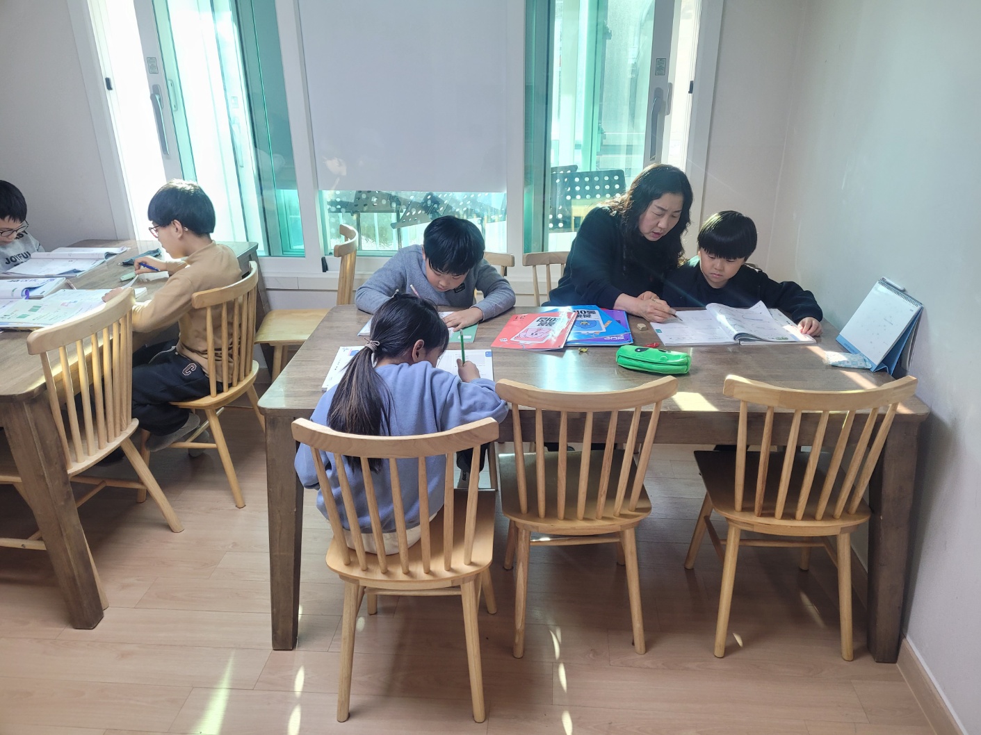 추운 날씨로 인해 실내에서 수업을 하는 아동들의 모습입니다~~~^^