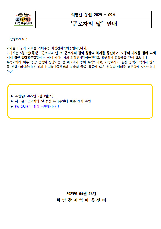 25. 04. 24 _9 '근로자의 날' 안내