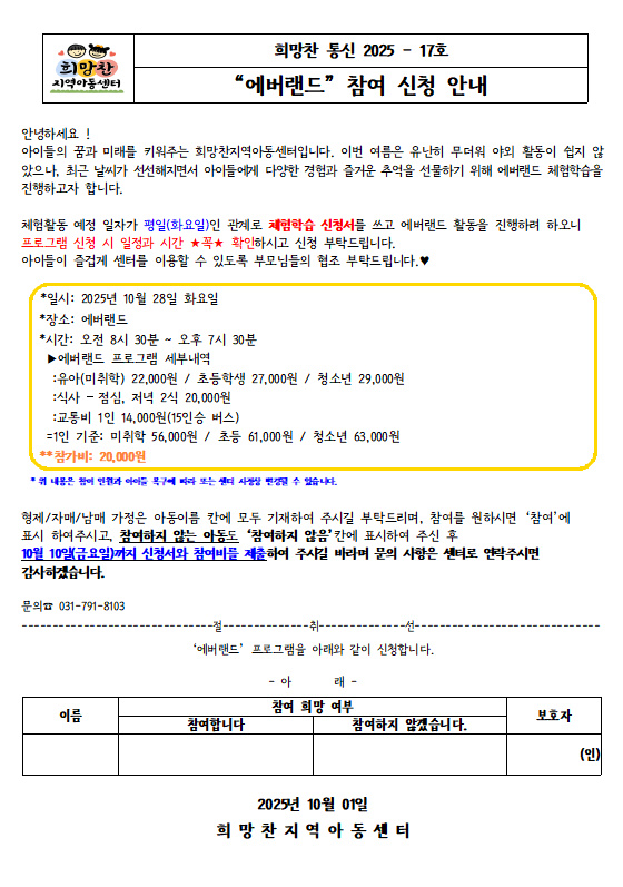 25. 10. 01 _17 '에버랜드 참여 신청 안내'