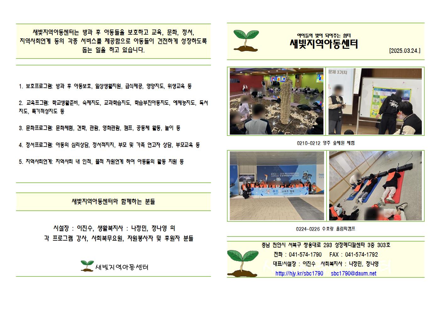 이진수천안 새빛지역아동센터 2025년 1분기 소식지입니다.2025-03-24 17:03 33