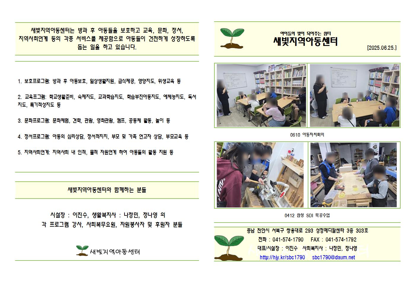 이진수천안 새빛지역아동센터에서 2025년 2분기 소식지를 보내 드립니다.2025-06-26 11:03 37